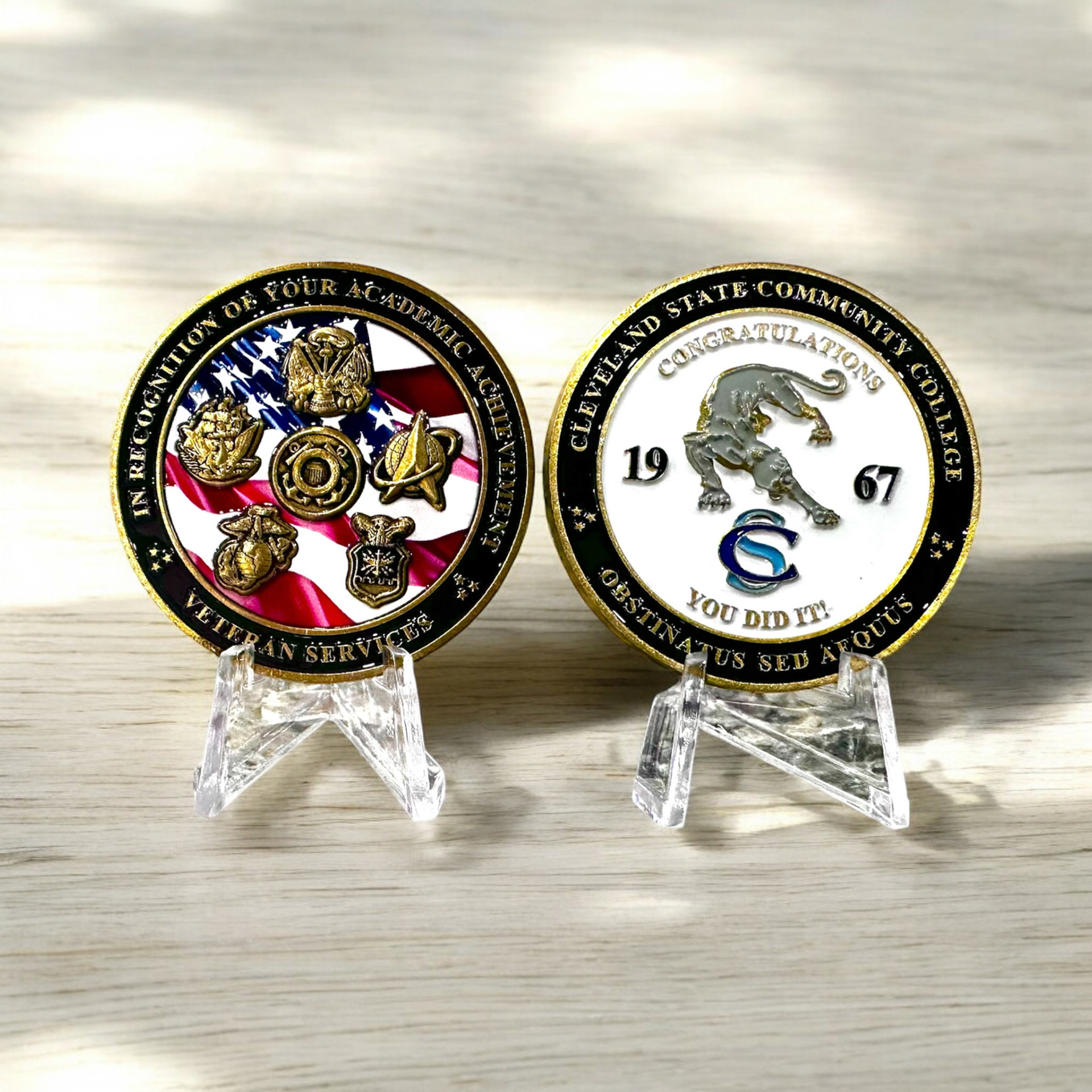 Browse our portfolio of custom challenge coins, enamel pins, embroidered patches, and specialty metalwork. Designed for military units, law enforcement agencies, corporations, and fraternal organizations.